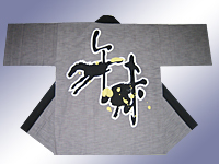 神社仏閣・厄年会様 西浦ひのえ午未会様 「午」と「未」の文字がそれぞれ干支の動物でデザイ ンされています。和風な素材にシンプルなデザインなのですが、金のプリントを飛ばして染めたような雰囲気も「粋」ですね!満足のいく一品です。