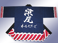 神社仏閣・厄年会様 浜尾オールスターズ様 シンプルなデザイン構成ですが、背文字や腰まわり の縄柄の輪郭など、手描きにした事で威勢の良さが全然違いますね。厄年の皆様ですが、「こだわり」と「団結力」を感じさせていただいた商談ができました。