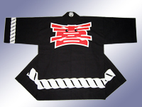 企業・学校・自治体様 喜楽会様 かわいいですね!「喜」の文字に目玉を付けてオリジナルキャラ クターになっています。袖口には「赤」がちらりと覗く、かくれたこだわり(写真ではわかりませんが・・)、目だってください!楽しんでください!これがオリジナル!