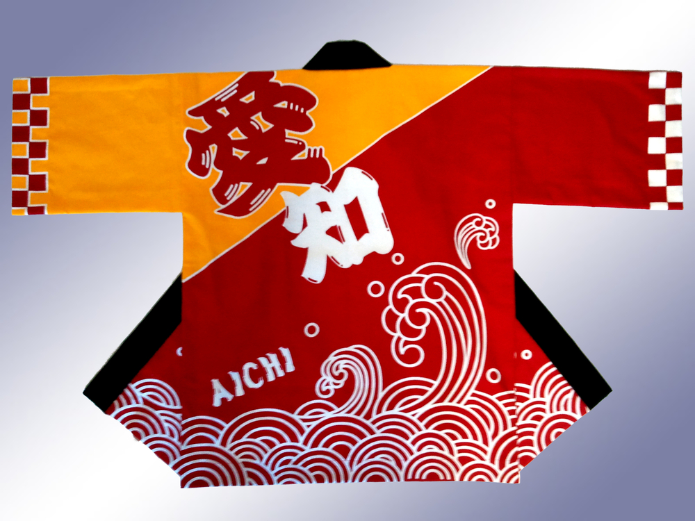 明るい県のイメージと伝統産業を感じさせる粋なデザインになりました!いつかこの法被を着て、地元へお越しくださいませ、大村知事!!