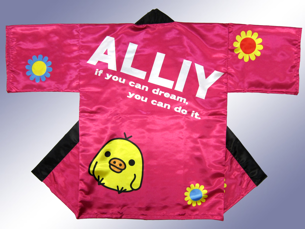 今回はサテン生地を使用したとっても愛らしいデザイン法被ですが、横断幕やイベントなどで使用するのぼり旗等でもその活用範囲は広がると思います。