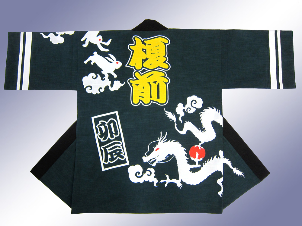 今年は例年とは一味違う「可愛く素敵な」デザインで望まれるようです。とはいっても染めはもちろん「本染め」、素材は和風紬をチョイスされていますので、風合いと耐久性は抜群!今年も周りにPRしまくってしまうこと請け合いですよね~