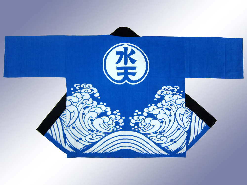 鮮やかなブルーと厳かな波のイメージが水天宮の背紋とともに映えています!