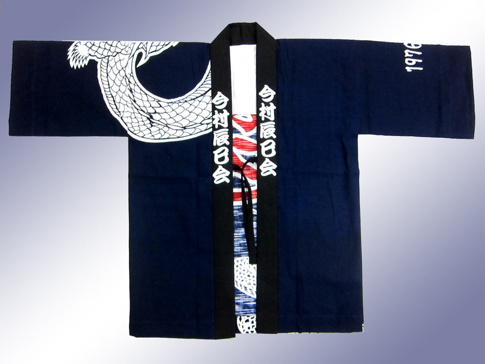 濃紺ベースに「辰巳」を真紅でワンポイントで、配色的にもデザイン的にもこのうえなく鮮やかで目立ちますよね。