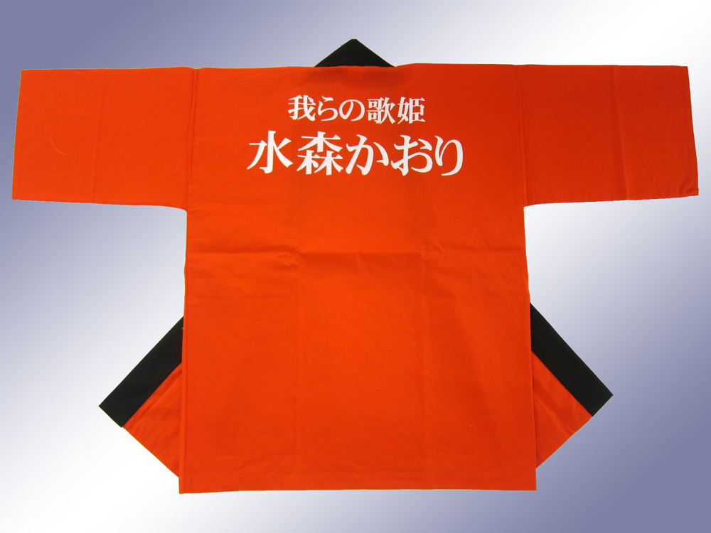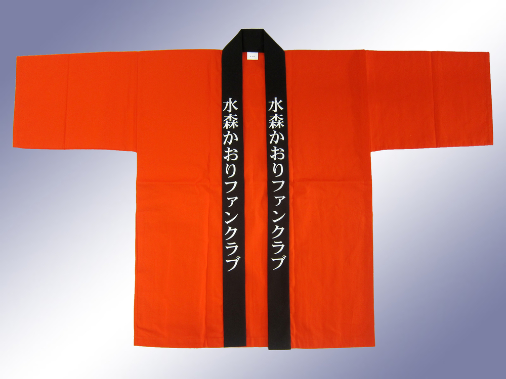 オレンジ地の既製法被の背中と両衿にプリントさせていただきました。
