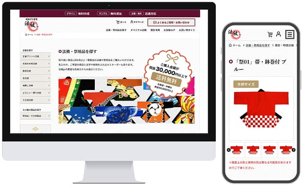 「法被・祭用品を探す」から既成の法被をお選びいただき、衿や背中、胸部分などに文字やロゴをプリントします。